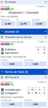 Enfin, Parions Sport se distinguée par ses offres alléchantes et ses cotes compétitives. Les nouveaux clients peuvent bénéficier de bonus de bienvenue, et les parieurs réguliers peuvent profiter d'offres particulières et de paris gratuits. Ces offres rendent l'expérience davantage captivante et augmentent les chances d'maximiser ses gains, donnant ainsi un coup de pouce à chaque pari.